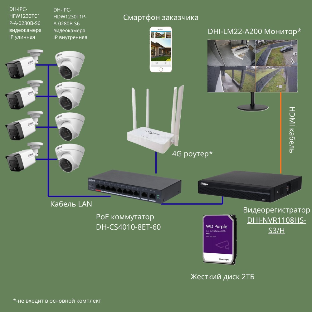 Комплект из 8 камер